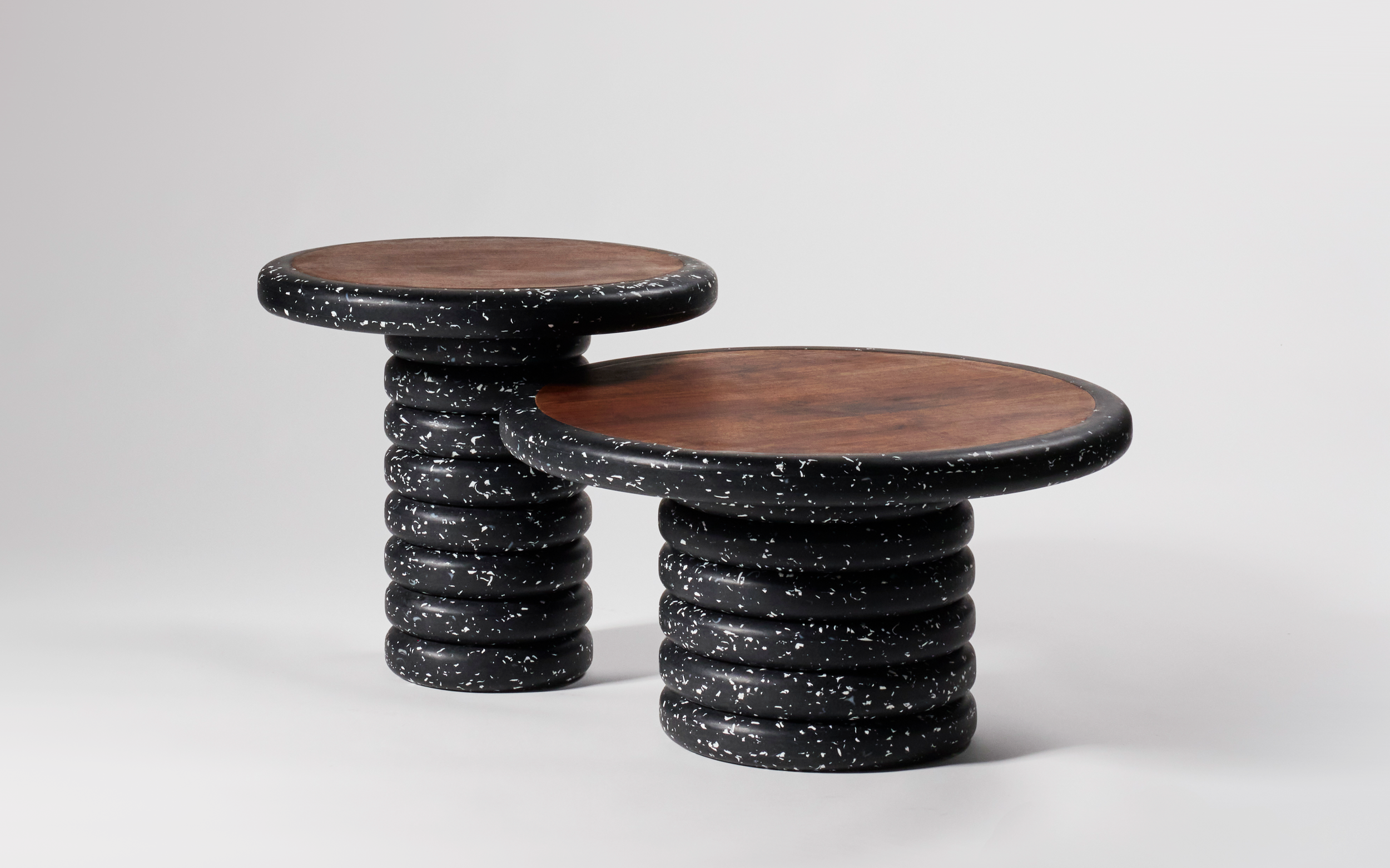 Nested is a table collection designed to explore how HDPE can feel soft, warm, and approachable despite its dark, flat appearance. What began as a material study became an investigation into form and edge treatment. By rounding and shaping the surfaces, the project transforms a rigid, industrial material into something inviting to interact with. The final tables balance HDPE’s durability with a sense of warmth, encouraging interaction and presence within a space.