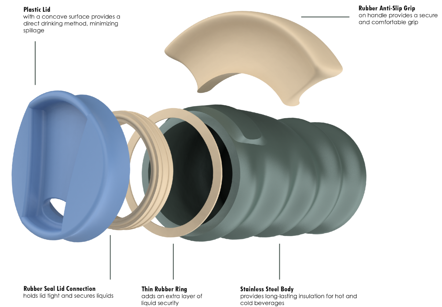 RIPPLE ‘Grip, Sip, and Go!’ DEMOGRAPHICS SKETCHES ITERATIONS STORYBOARD ARTHRITIS-FRIENDLY FEATURES RIPPLE Next Project: Ceramics and More! Back To Portfolio Pieces